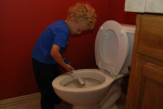 Ours is on Tuesday, and I’ve been working to incorporate the boys more and more into the actual cleaning….it’s slower but it sure is fun.